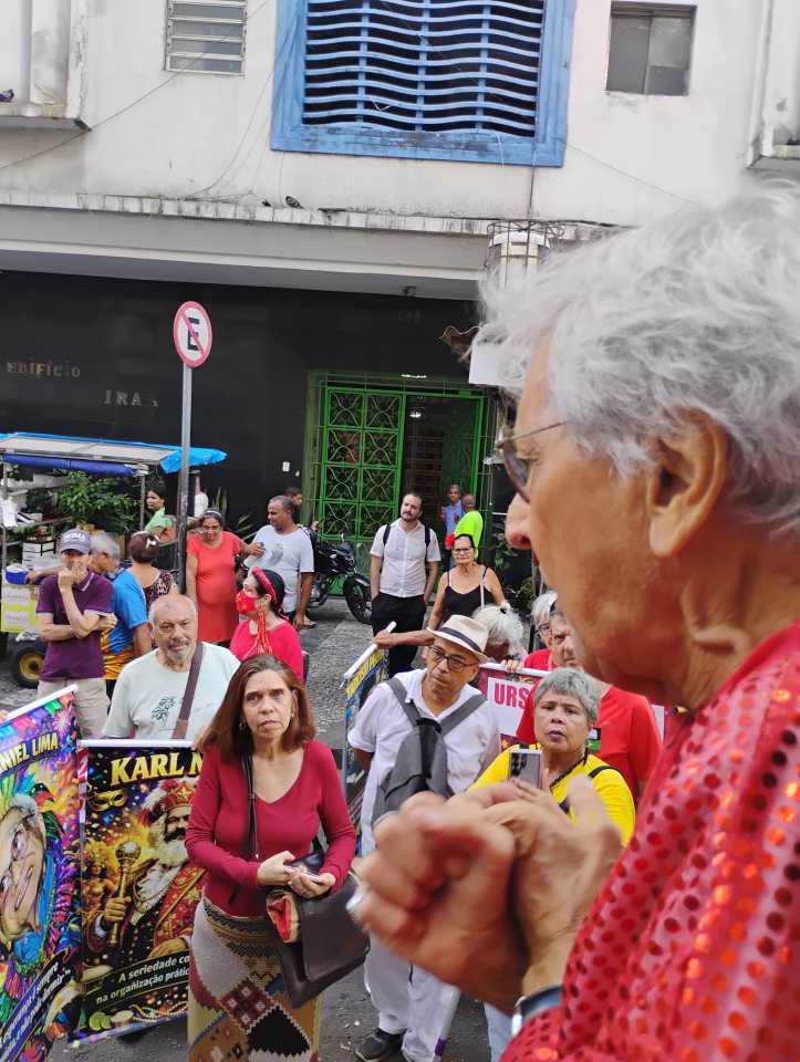 Marcelo Mario Melo discursando frente à estátua de Tarcisío Pereira, fundador de ‘Nos sofre mais nos goza’, dando uma verdadeira aula histórica e um alerta para essa extrema direita que ameaça, hoje, a liberdade de todos os brasileiros.