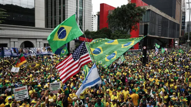 La extrema derecha se manifiesta en el día de la Independencia de Brasil con banderas de EEUU y del Estado genocida de Israel